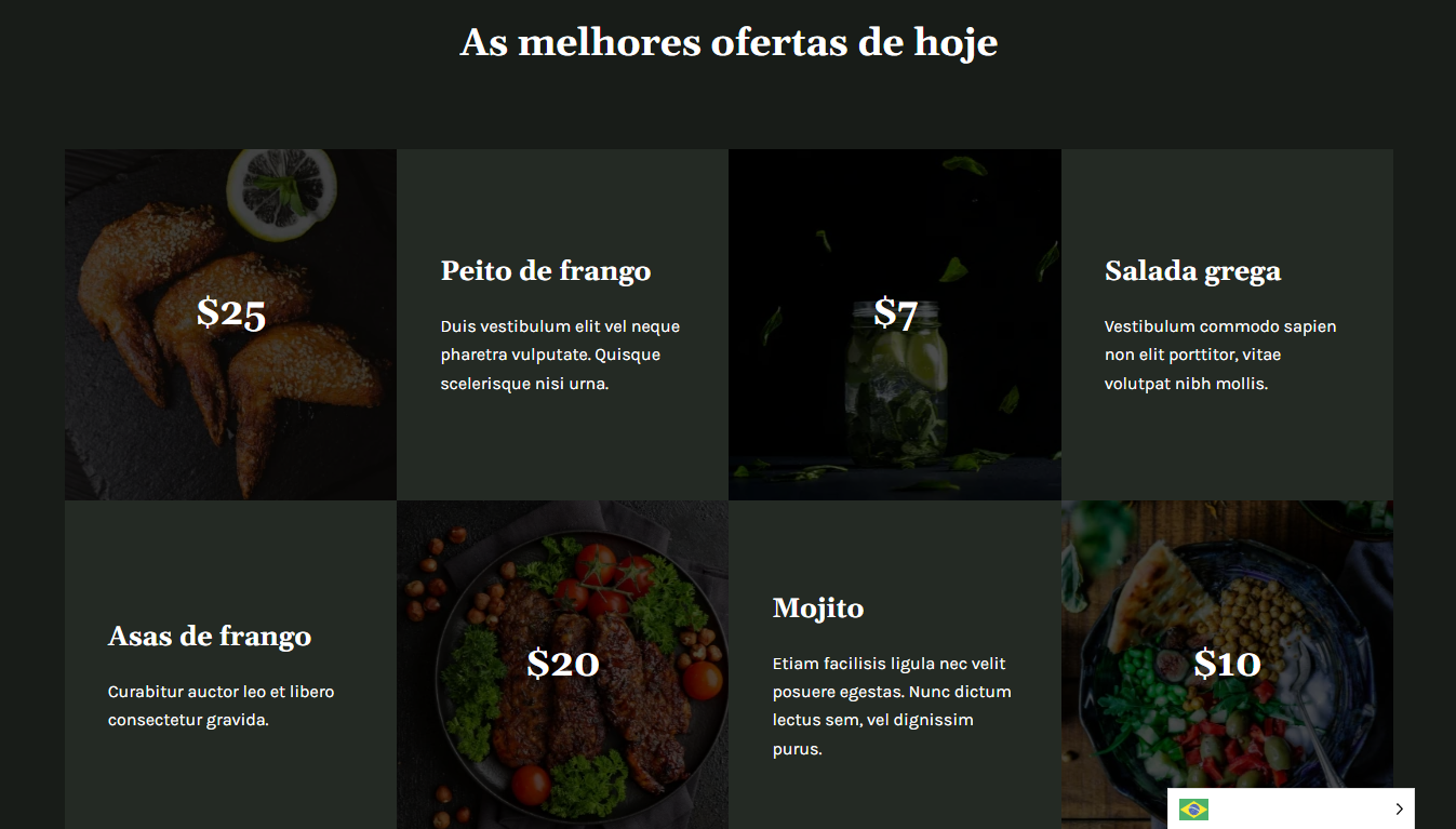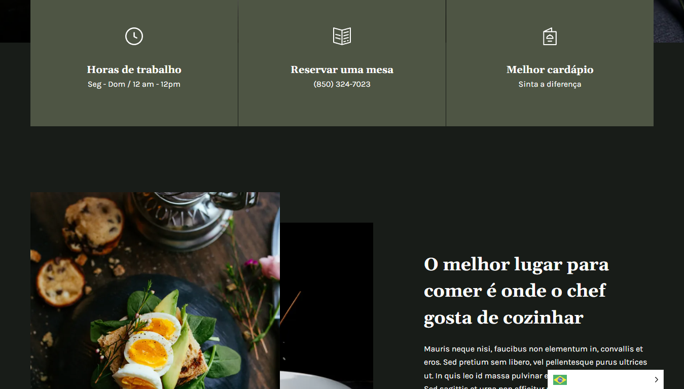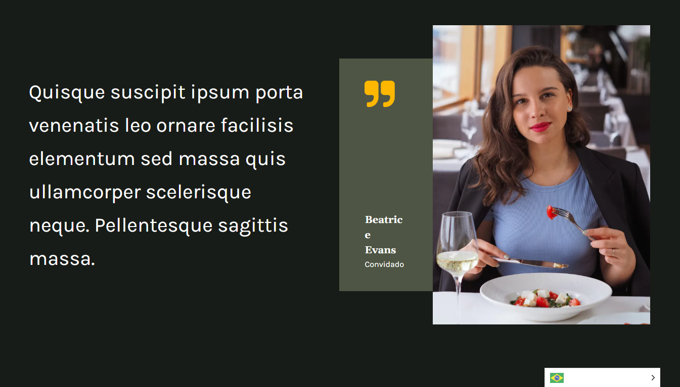 Este template para restaurante é ideal para apresentar o cardápio, horários de funcionamento, reservas e depoimentos de clientes de forma moderna e atraente. Com um design sofisticado e intuitivo, ele proporciona uma experiência envolvente para os visitantes, destacando a identidade e os sabores do seu estabelecimento. Perfeito para restaurantes que querem conquistar mais clientes online.