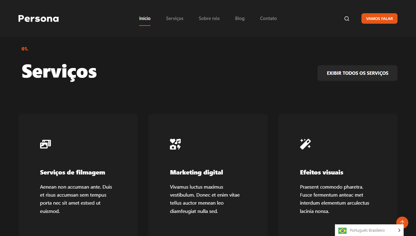 Este template para produtora de vídeos oferece um design moderno e profissional, ideal para exibir portfólio, serviços e projetos audiovisuais. Com seções para destacar vídeos, depoimentos de clientes e informações sobre a equipe, ele permite uma navegação fácil e atraente. Perfeito para empresas que buscam apresentar seus trabalhos de forma criativa e conquistar novos clientes.
